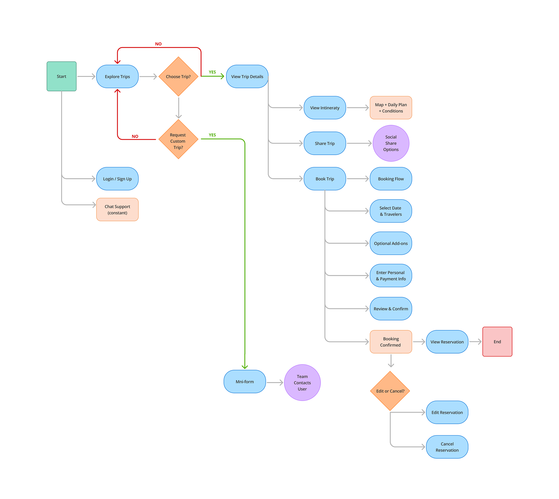 User flow for booking a trip